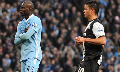 Balotelli celebration after a harsh penalty against one of the Taylor's who also messed up for Richards goal, Kun added a penalty.